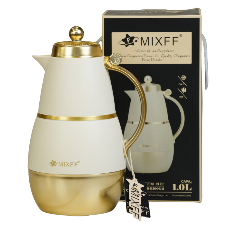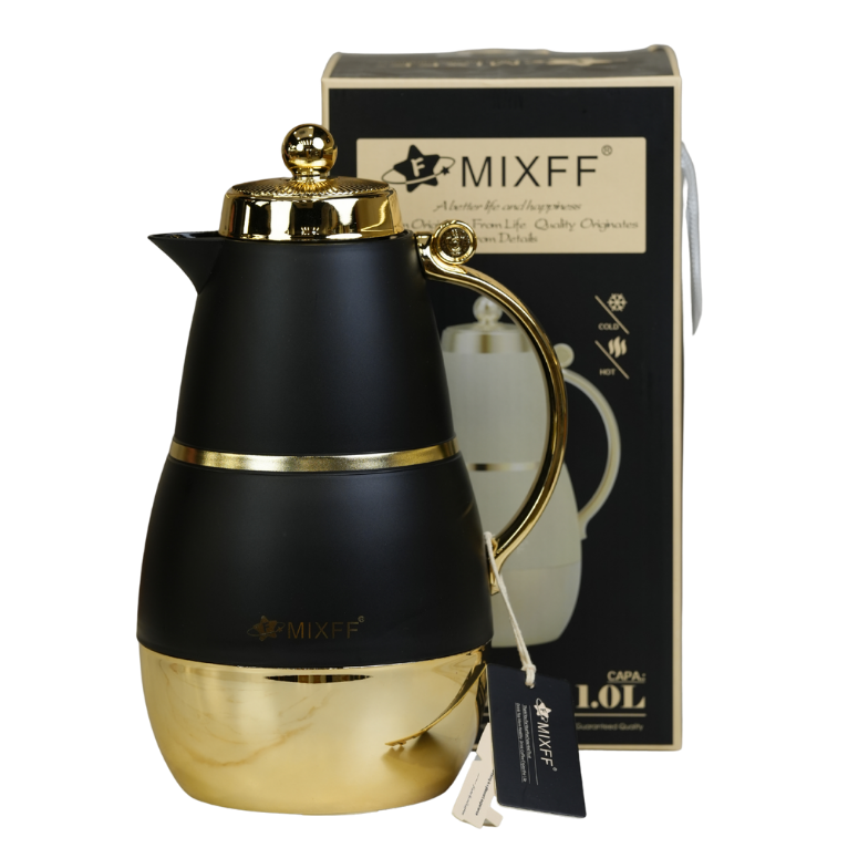 مطارة MIXFF الأنيقة بسعة 1 لتر، مصممة لتقديم القهوة والشاي بلمسة فاخرة. متوفرة بعدة الوان مع لمسات ذهبية جذابة، وتعمل بتقنية العزل الحراري للحفاظ على المشروبات ساخنة أو باردة لفترة طويلة.