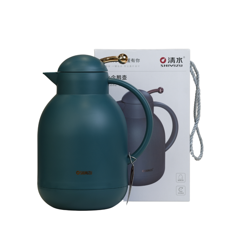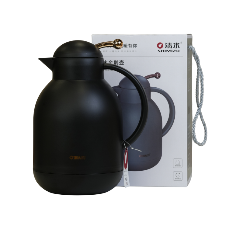 يعتبر ترمس شيميزو مزيجاً رائعاً بين التصميم العصري والأداء العالي. يتميز بجسم خارجي متين بلون "البيج الفاتح" أو "الأسود المطفأ" مع مقبض مريح وسهل الاستخدام. يحتوي على زجاج داخلي عالي الجودة لضمان أقصى درجات العزل الحراري، مما يحافظ على القهوة أو الشاي ساخناً لساعات طويلة. الغطاء محكم الإغلاق لمنع التسرب، ومزود بزر ضغط علوي مطلي باللون الذهبي يضيف لمسة من الفخامة ويسهل عملية التقديم