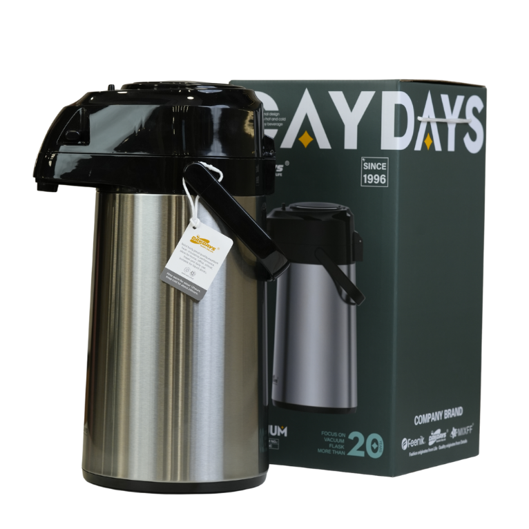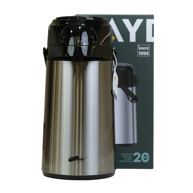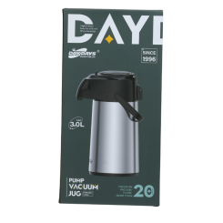 ترمس ضغاط عالي الجودة من علامة "داي دايز"، مصمم من الفولاذ المقاوم للصدأ (ستانلس ستيل) بسعة كبيرة تبلغ 3 لتر. مثالي لحفظ المشروبات الساخنة والباردة لفترات طويلة، ويتميز بسهولة الاستخدام بفضل آلية الضخ العلوية وقاعدة قابلة للدوران.