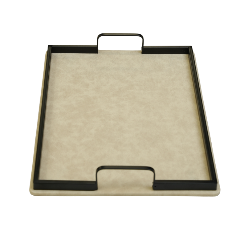 طقم صواني تقديم مخمل بيج (قطعتين)