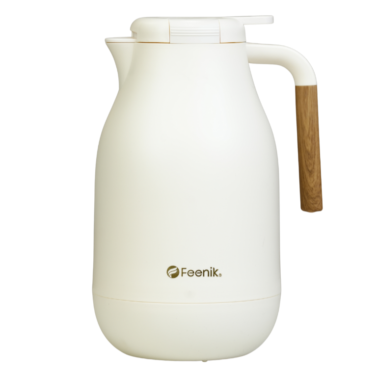 هي دلة حرارية فاخرة مصممة بنظام عزل مزدوج الجدار للحفاظ على درجة حرارة المشروبات الساخنة والباردة لفترات طويلة. تتميز بتصميم عصري وأنيق يتضمن مقبضاً خشبياً مريحاً وغطاءً محكماً يمنع التسرب، مما يجعلها مثالية لتقديم القهوة العربية والشاي في المجالس والمناسبات