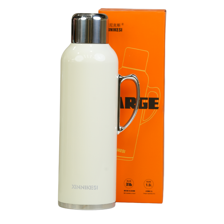 مطرة ماء حرارية عالية الجودة مصنوعة من الفولاذ المقاوم للصدأ (ستانلس ستيل 316). تتميز بتصميم عصري وسعة كبيرة (1.5 لتر) تحفظ درجة حرارة المشروبات الساخنة والباردة لمدة تصل إلى 24 ساعة. مزودة بمقبض مريح لتسهيل الحمل، مما يجعلها مثالية للرحلات، الجيم، والأنشطة الخارجية.