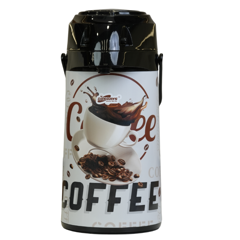 استمتع بمشروباتك الساخنة والباردة لفترة أطول مع ترمس "دي دايز" العملي. يتميز بتصميم أنيق مزين برسومات القهوة العصرية، ومزود بنظام مضخة هوائية لسهولة صب السوائل بضغطة واحدة دون الحاجة لحمله. بسعة كبيرة تصل إلى 3 لتر، يعد الخيار المثالي للعائلات، التجمعات، والمكاتب. الترمس مصمم بجدار عازل عالي الكفاءة للحفاظ على درجة الحرارة، مع مقبض متين يسهل عملية النقل.