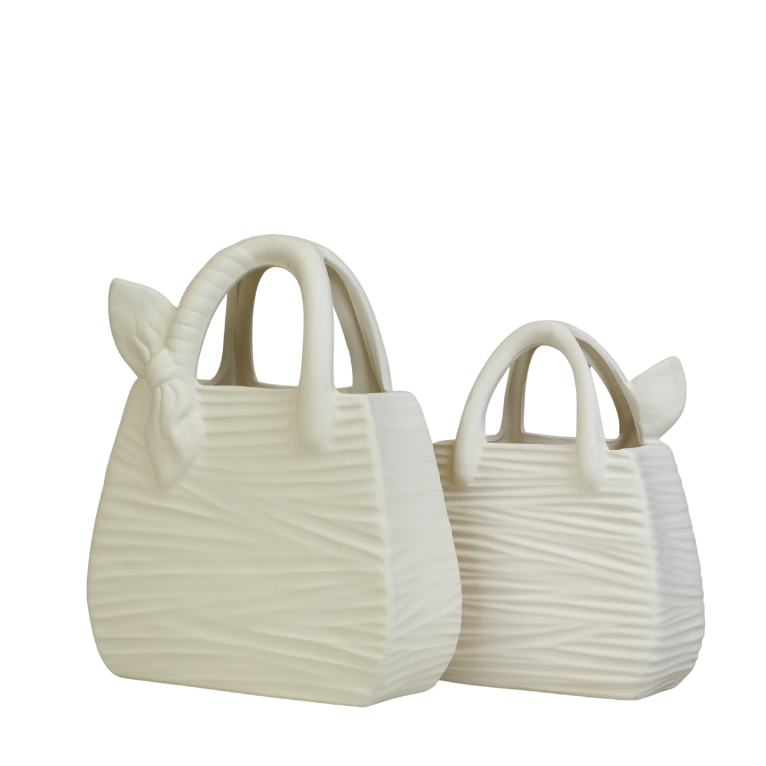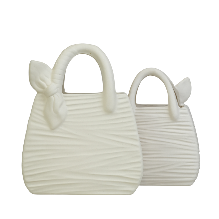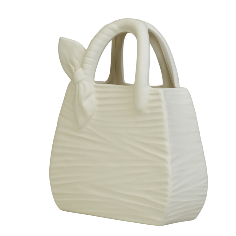 تحفة فنية فريدة تجمع بين عالم الموضة وديكور المنزل العصري، تأتي بتصميم مبتكر على شكل "حقيبة يد" انسيابية. تتميز هذه القطعة بلونها الكريمي الهادئ وملمسها المضلع الذي يضفي عليها عمقاً بصرياً وجاذبية خاصة، مع تفاصيل رقيقة تشبه الربطة اليدوية على المقبض. بفضل حجمها الكبير، تُعد قطعة بارزة ومثالية لتزيين المداخل، أرفف الصالونات، أو غرف النوم، لتمنح مساحتك لمسة أنثوية راقية وعصرية في آن واحد.