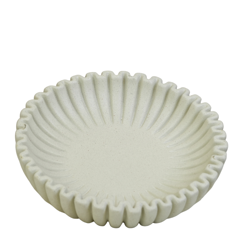 قطعة ديكور فاخرة مصنوعة من الرخام الطبيعي، تتميز بتصميم دائري مع أطراف مخددة (Fluted) تضفي لمسة من الأناقة العصرية على منزلك. مثالية كوعاء للضيافة، أو لترتيب المجوهرات والمفاتيح، أو كقطعة مركزية لافتة على طاولة الطعام أو المدخل.