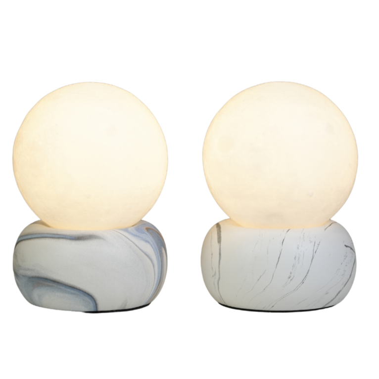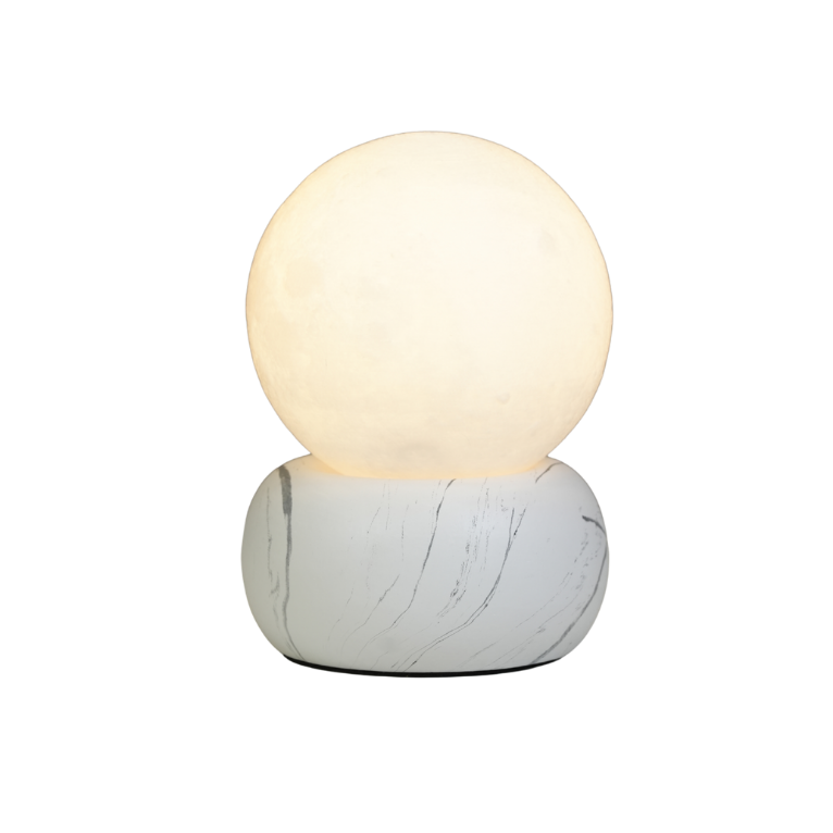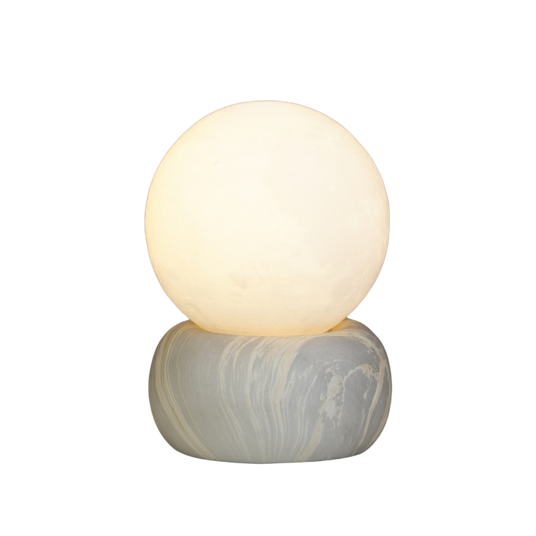 أضف لمسة من الأناقة العصرية إلى منزلك مع هذا المصباح الفريد. يتميز بتصميم يجمع بين فخامة القاعدة الرخامية الطبيعية ونعومة الغطاء الزجاجي الكروي غير اللامع (أوبال). متوفر بثلاثة أنماط رخامية مميزة (الأبيض الكلاسيكي، الرمادي المتعرج، والأزرق الرخامي) ليناسب مختلف الديكورات، مما يوفر إضاءة دافئة وهادئة لغرف النوم أو المعيشة