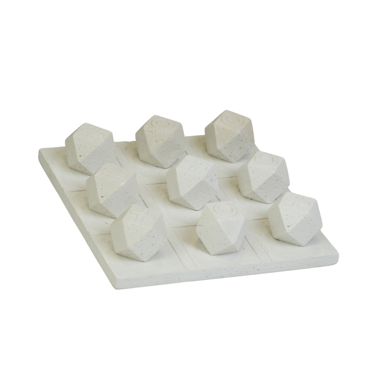 ارتقِ بديكور منزلك مع هذه التحفة الفريدة التي تمزج بين الفخامة والمتعة. طقم لعبة "إكس أو" مصنوع من الرخام الطبيعي بتصميم هندسي عصري، حيث تأتي القطع على شكل مجسمات "متعددة الأسطح" منحوتة بدقة لتستقر فوق قاعدة رخامية مربعة. بفضل لونها الأبيض المنقط وتفاصيلها الراقية، تُعد هذه القطعة إضافة مثالية لطاولات القهوة (Coffee Tables) أو المكاتب، حيث تجمع بين كونها تحفة فنية ملفتة ولعبة كلاسيكية تجمع العائلة والأصدقاء.