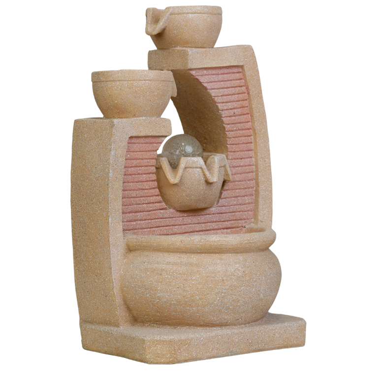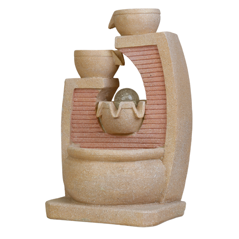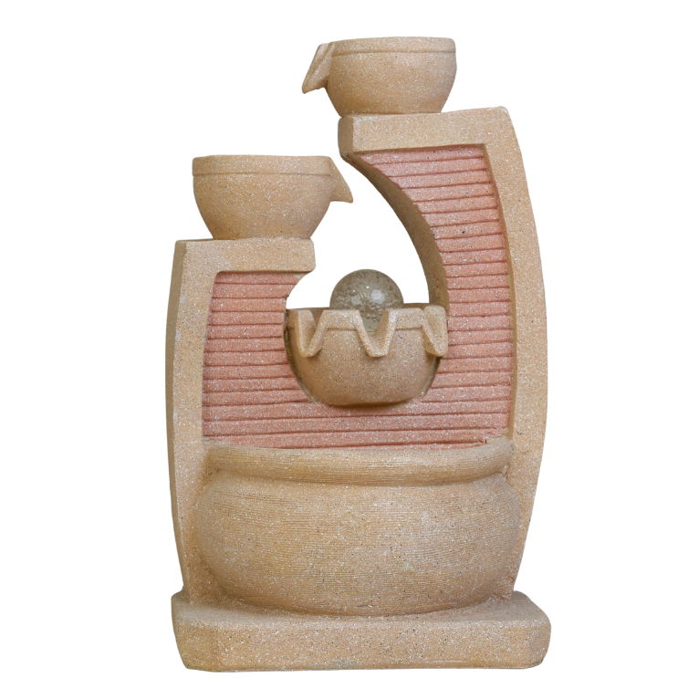أضف لمسة من الهدوء والأناقة إلى منزلك مع هذه النافورة العصرية ذات التصميم الهندسي الفريد. تتميز بتدفق مياه متتالي عبر أوعية متدرجة، مع كرة كريستالية دوارة وإضاءة LED دافئة تخلق أجواءً مريحة للاسترخاء. النافورة مصنوعة من مادة البوليريسين المتينة التي تحاكي مظهر الحجر الطبيعي، مما يجعلها قطعة ديكور مثالية لغرف المعيشة أو المكاتب.